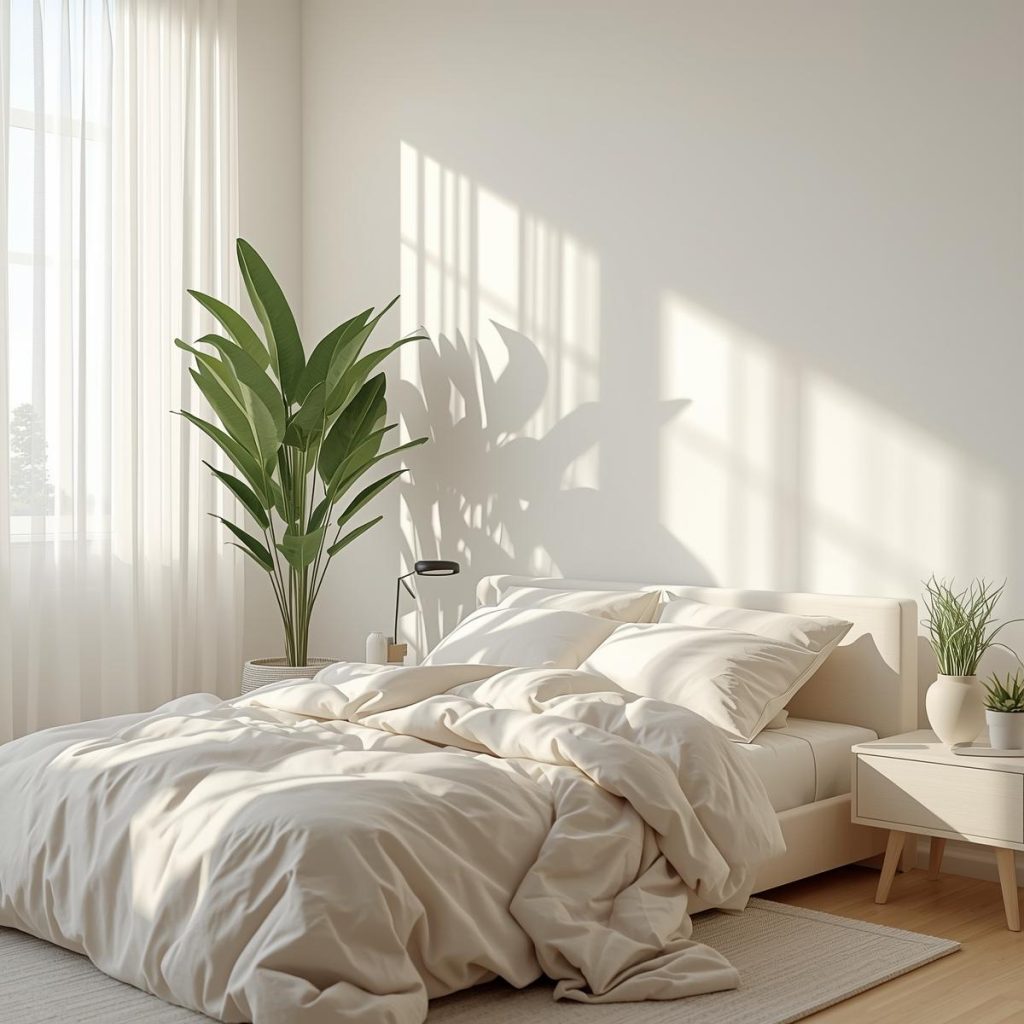 Plants add freshness and life to any bedroom. A tall leafy plant in the corner or small potted plants on nightstands can instantly brighten the space. Greenery softens modern designs and complements neutral palettes. Plants also improve air quality and create a calm vibe. Choose low-maintenance options if you’re busy. Natural elements make the bedroom feel peaceful and balanced.